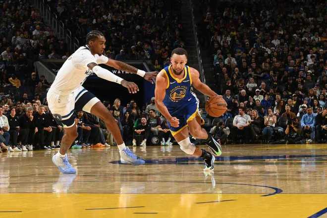 - 庫(kù)里復(fù)出空砍39分蘭德?tīng)?7+9 森林狼客場(chǎng)險(xiǎn)勝勇士